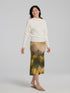 Cette jupe midi en viscose, à la coupe ligne A, offre un confort absolu. Au bas, une forêt dense en verts profonds déploie ses ramures, tandis que la taille se pare d’une chaîne de montagnes sur fond caramel, créant une transition gracieuse vers le haut de la silhouette. Sa bande de taille, doublée de notre power mesh, procure un effet gainant qui soutient la silhouette tout en restant agréable à porter du matin au soir. Parfaite avec la camisole Brume pour une allure harmonieuse, elle se transforme aisément en look décontracté avec un gros pull douillet ou en tenue plus structurée avec un veston élégant.