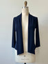 Lioren, c’est la touche finale qui élève votre tenue sans effort. Coupée dans un tissu marine dense et extensible, cette veste courte est une pièce essentielle pour structurer un look tout en conservant une belle liberté de mouvement. Elle est coupée à la taille au dos, tandis qu’à l’avant, une bande un peu plus longue se termine en pointe. On peut la laisser tomber librement pour une allure fluide ou la replier pour donner plus de structure à la silhouette. Sa coupe précise, ses lignes épurées et sa teinte intemporelle en font un allié de choix pour vos robes, combinaisons ou pantalons favoris. Une pièce raffinée, à la fois audacieuse et classique, qui s’impose comme un indispensable.